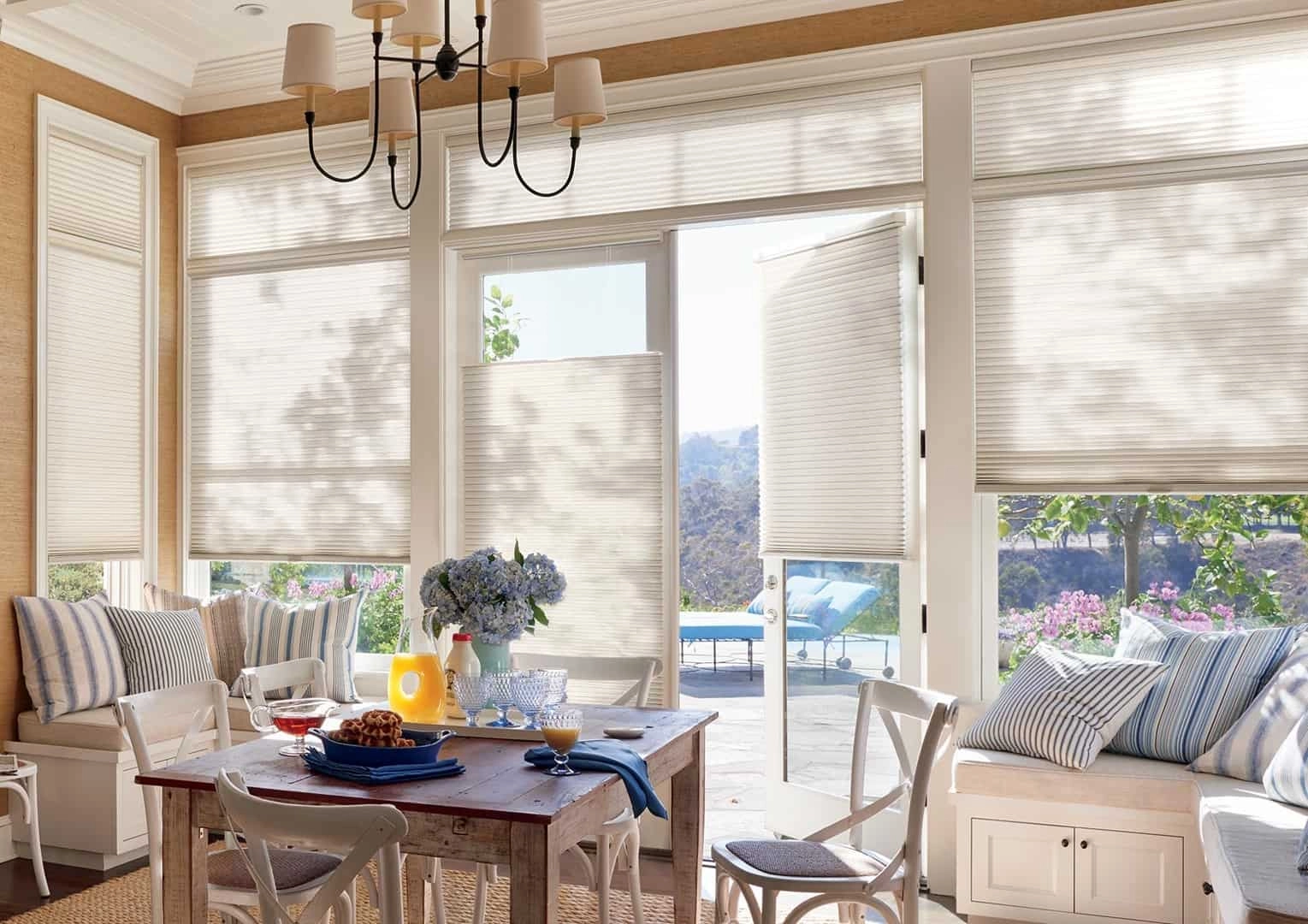 Cellular shades improve the energy efficiency of your home by trapping pockets of air in the fabric, creating an extra layer of insulation on your windows that keeps the heat out in summer and cold out in winter.